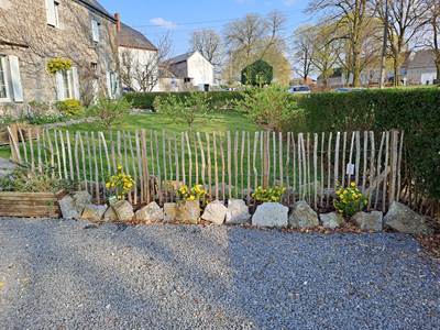 Situé au bord d'une place verte et arborée – la plus belle de l'entité de Dinant - au centre du village de Falmagne, le cadre est bucolique, plein de charme.